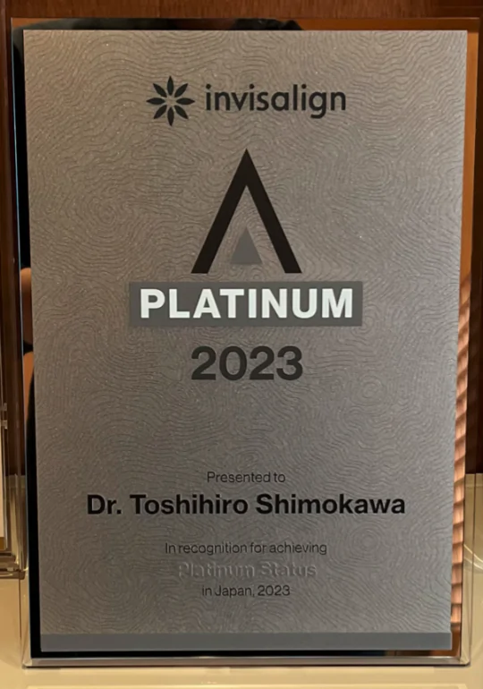 インビザライン プラチナドクター になりました! 2024.02.01 新着情報 クリア矯正歯科ホームページをご覧の皆様、ありがとうございます! 院長の下川です。 この度2023年の治療実績により invisalign社のPLATINUM Docterに認定いただきました! また認定に伴い、立派な盾をいただきました! 今後も現状に満足せず、患者様お一人おひとりに最適な治療と、素敵な笑顔をお届けできるようにスタッフ一同頑張って参りますので、どうぞよろしくお願いいたします! ⇩矯正治療のご予約はこちらから⇩ 初診専用WEB予約 再診専用WEB予約
